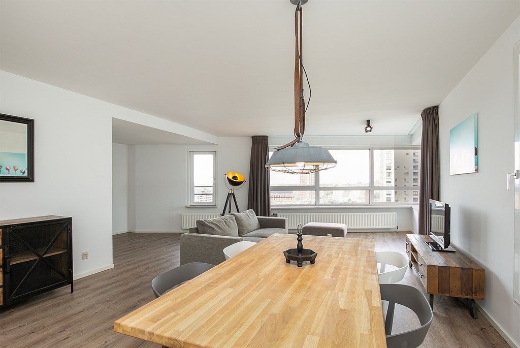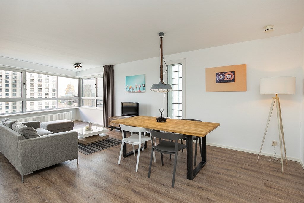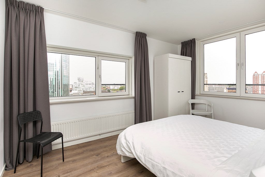 Beschrijving Zeer ruime en volledig gemeubileerd 3-kamer appartement te huur, gelegen op de 13e verdieping van de beroemde Schielandtoren in het stadscentrum van Rotterdam. Dit geweldige 3-kamer ap...