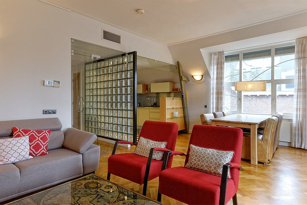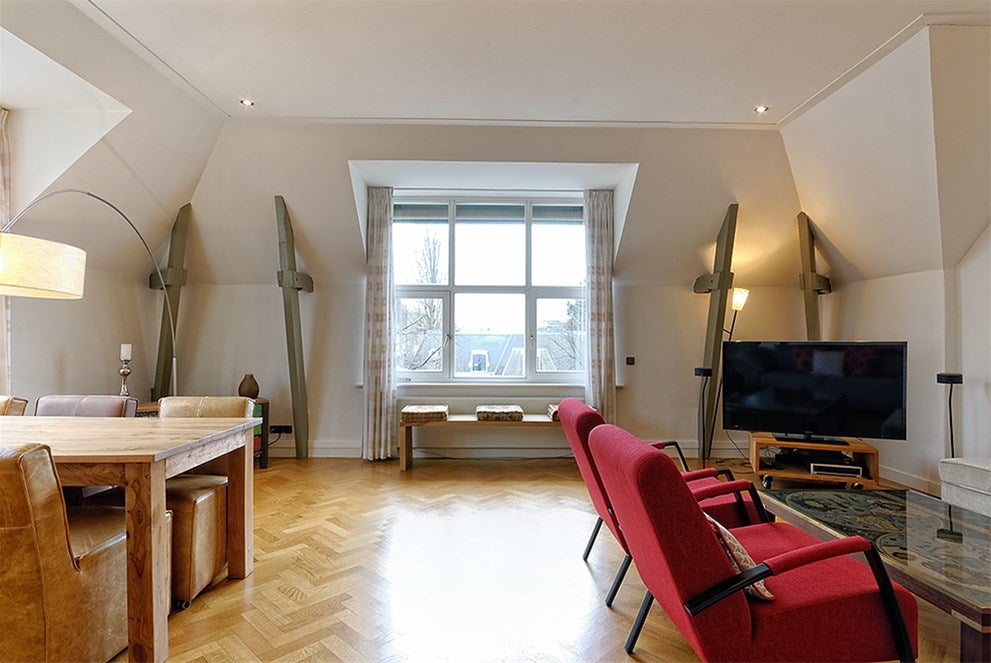 Beschrijving Emmalaan 19-D , 1075 AT Amsterdam. MODERN EENZESLAAPKAMER / TWEE BADKAMER APPARTEMENT MET BALKON NABIJ VONDELPARK Mooie, volledig gemeubileerde DUPLEX appartement van ca. 110 m2 gele...