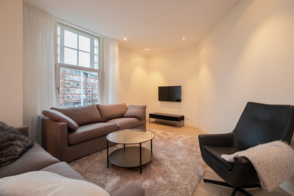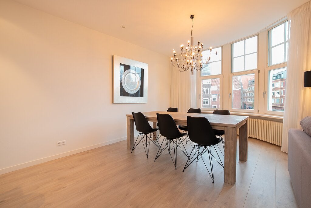 Beschrijving Gelegen in het hart van de prestigieuze 'Apollobuurt' op de hoek van de bekende 'Beethovenstraat', bieden wij dit volledig gerenoveerde appartement op de tweede verdieping aan dat bere...