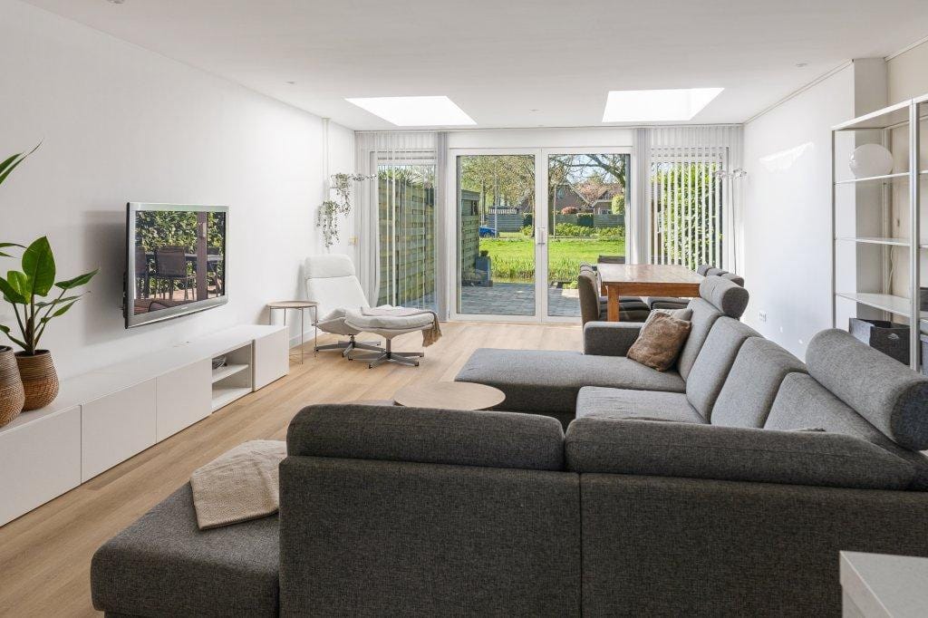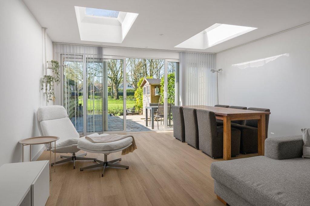 Zeer royale 5-kamer eengezinswoning met maar liefst twee luxe badkamers, een parkeerplaats op eigen terrein en een zonovergoten achtertuin op het zuiden met vrij uitzicht op een siervijver. Gelegen in...