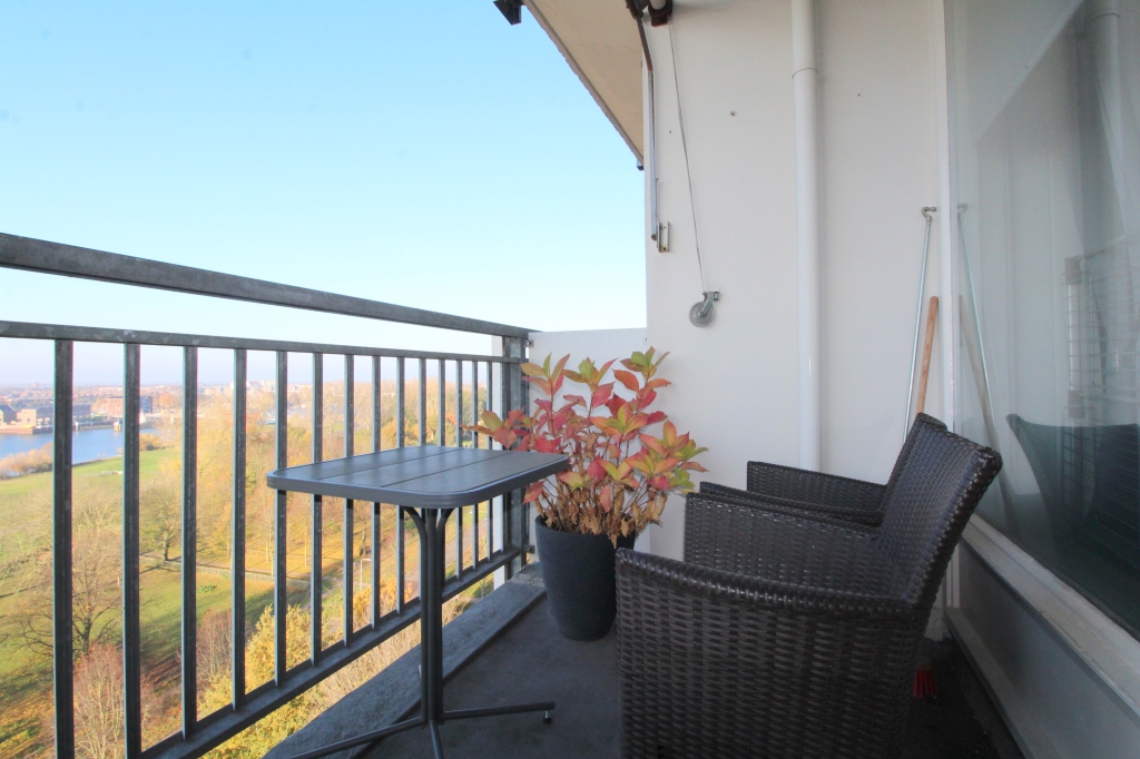 Op de tiende verdieping van het Terborch Veste-complex bevindt zich dit mooie 2-kamer appartement met royaal balkon, prachtig uitzicht en een eigen berging. Op een ideale locatie: op enkele minuten lo...
