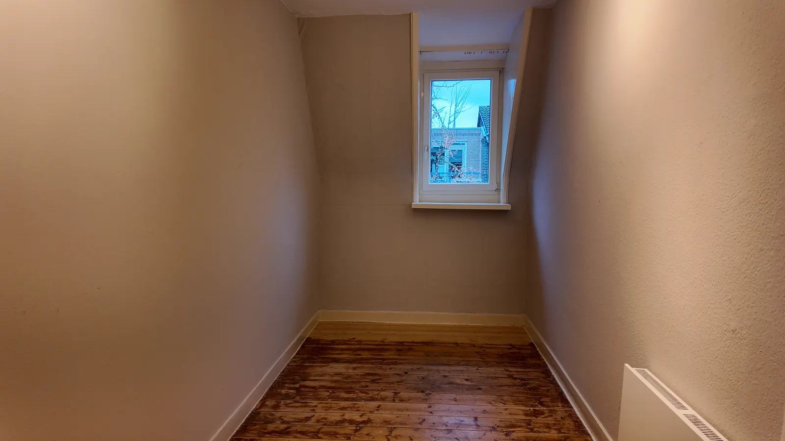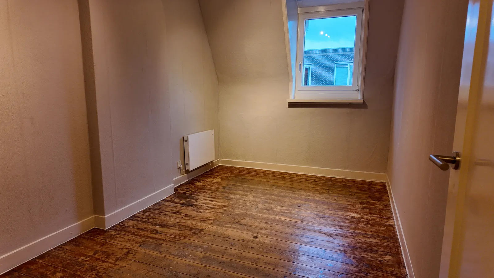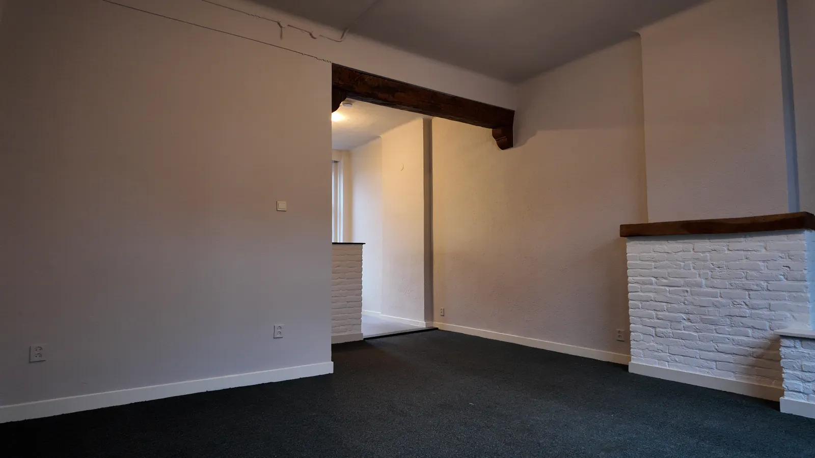 Spacious upstairs apartment with a bright living room and semi-open kitchen on the first floor. On the second floor, there are two bedrooms measuring 11 and 12m², featuring wooden floors and a new bat...
