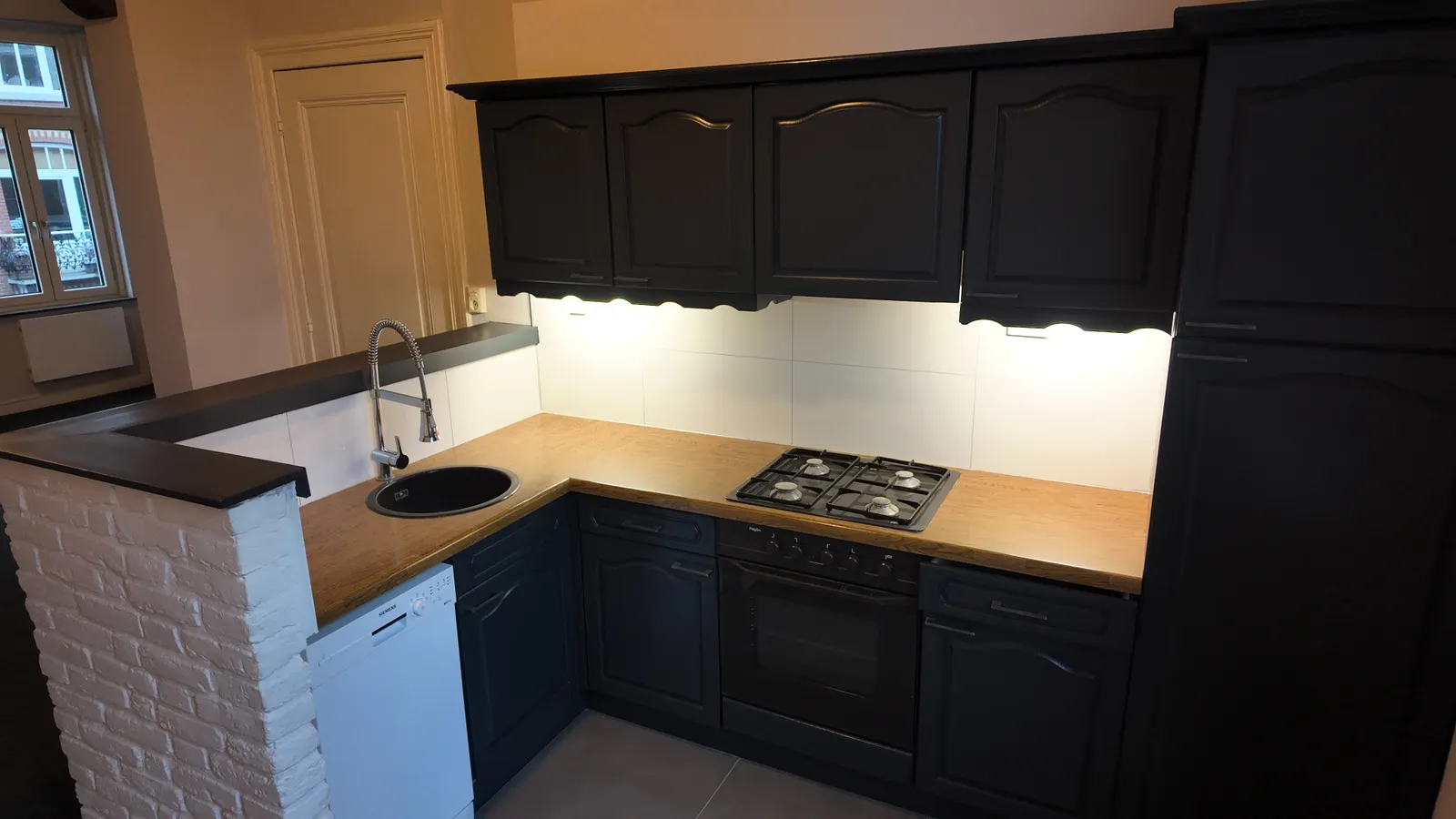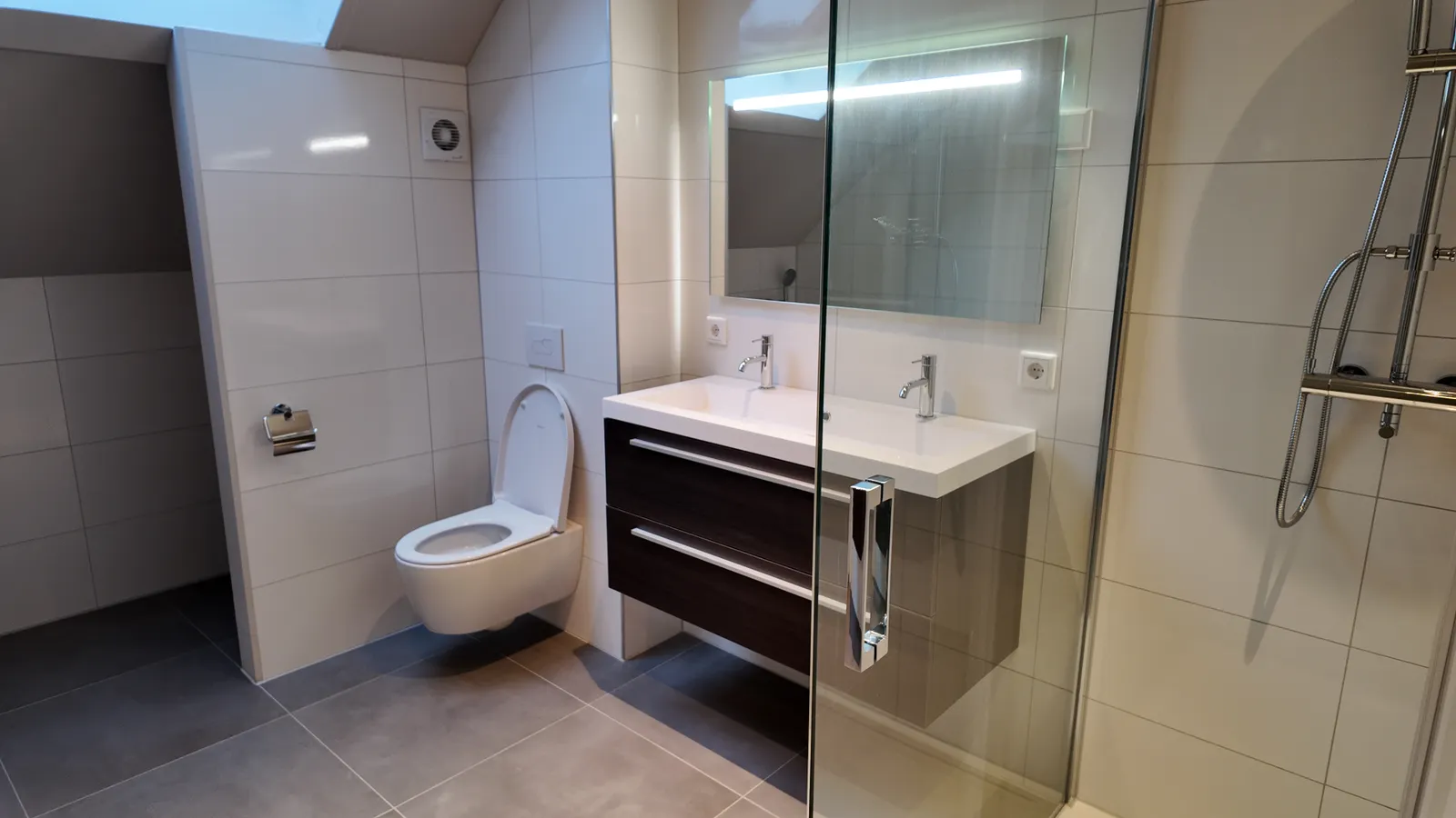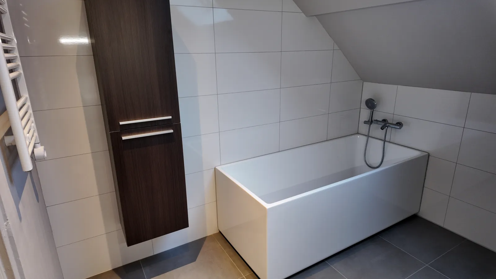 Spacious upstairs apartment with a bright living room and semi-open kitchen on the first floor. On the second floor, there are two bedrooms measuring 11 and 12m², featuring wooden floors and a new bat...