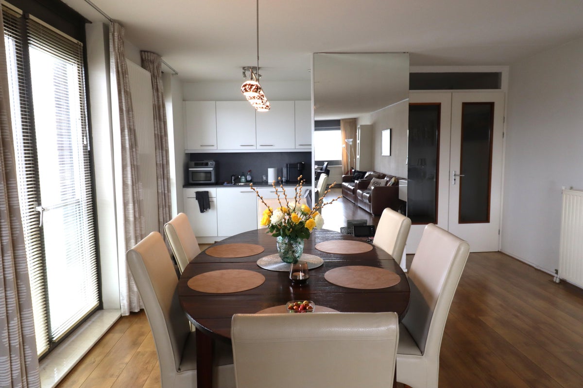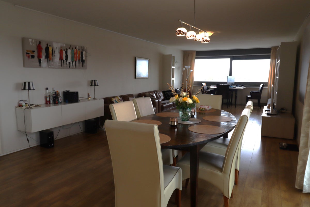 Beschrijving Geen studenten Gelegen aan Plein 1992 met prachtig uitzicht over de Maas, dit ruim, volledig gemeubileerd appartement (160m²). Middels de ruime entreehal met lift bereikt u 4de verdiep...