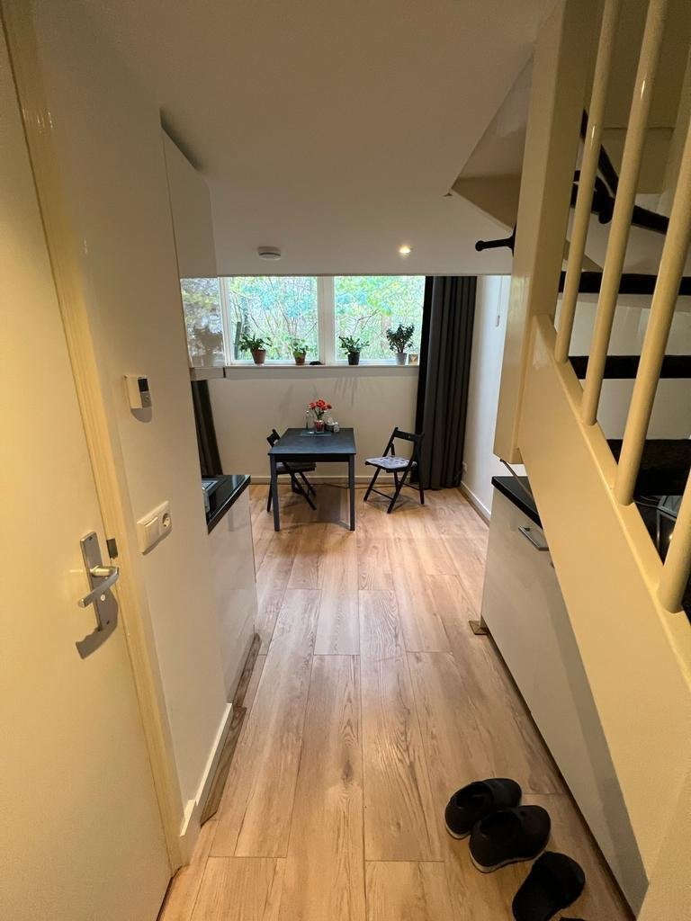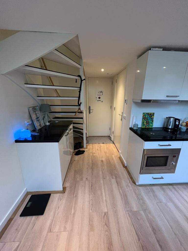 Beschrijving Luxe zelfstandig appartement dicht bij de Hanzehogeschool en uitvalswegen. De ruimte bestaat uit 2 gedeeltes. Op de begane grond bevindt zich de woonkamer met open keuken van 18m² en d...