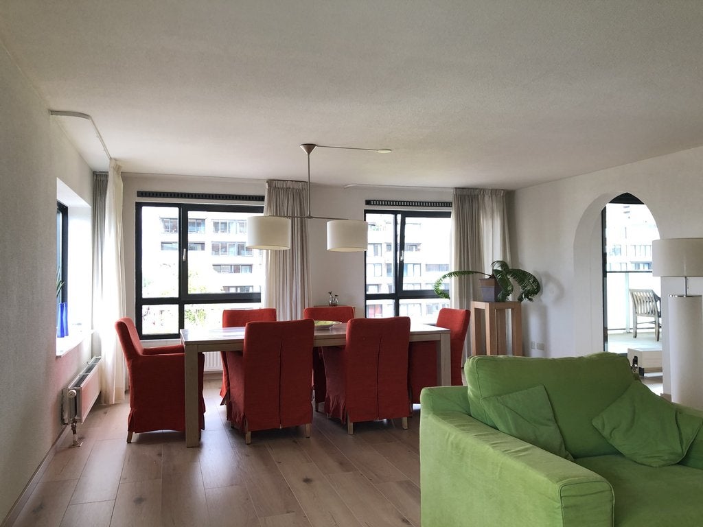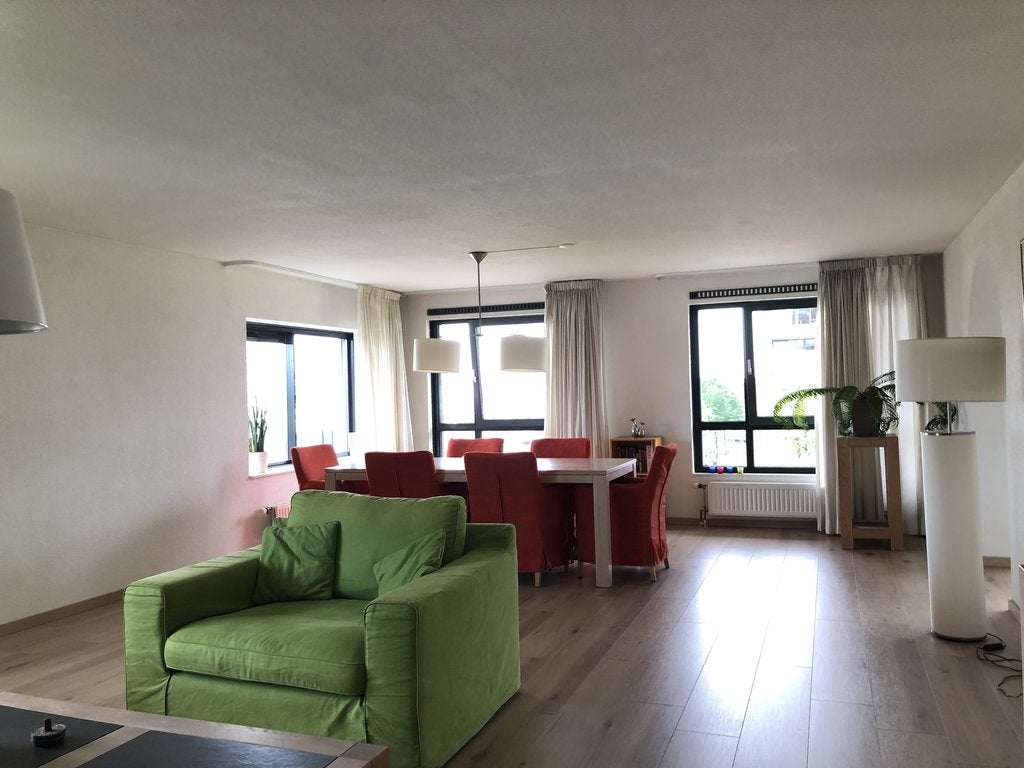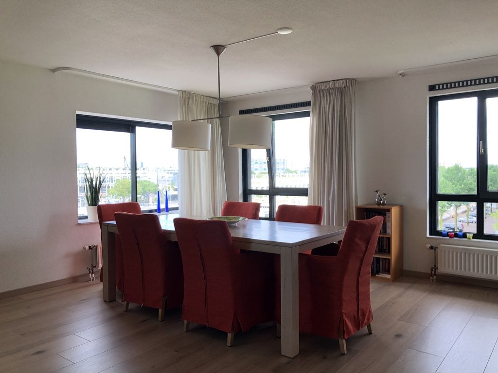 Beschrijving TE HUUR: Royaal, gemeubileerd 3-kamer appartement gelegen op de 4e verdieping met terras en schitterend vrij zicht op de Entrepothaven. Parkeren doet u op uw privé parkeerplaats in de...