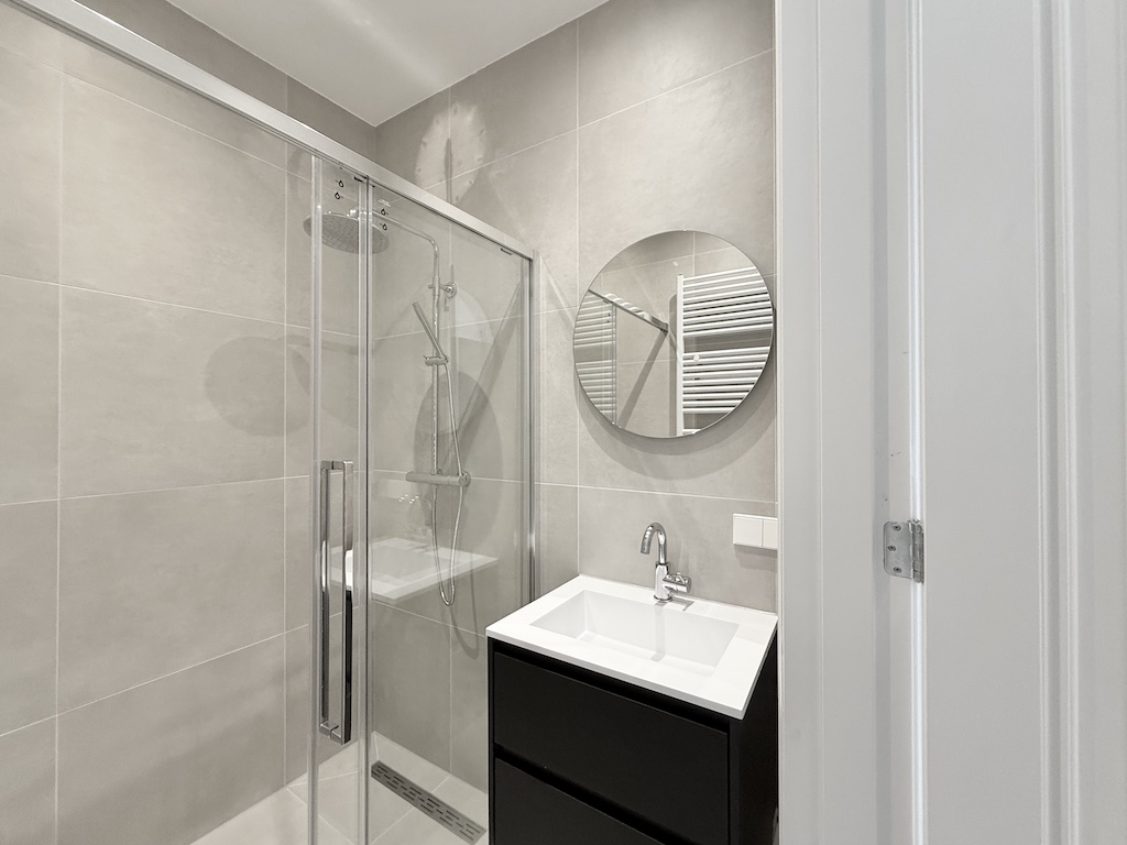 Wooden floor Ceiling lights Floor heating Blinds Kitchen equipped with drawers and cabinets Integrated 4 ring induction stove Integrated extractor fan Integrated oven- microwave combi Integrated dishw...