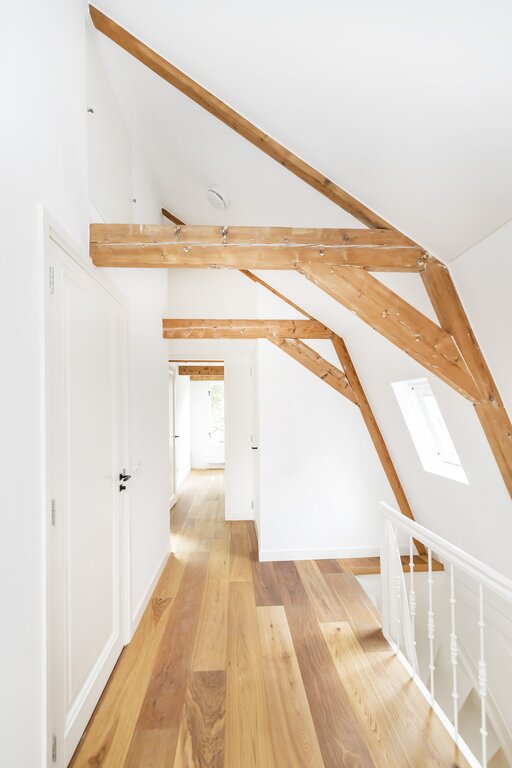 Rondleiding De eigen entree leidt naar de tweede verdieping waar het appartement zich bevindt. Hal met separaat toilet. Stalen deuren geven toegang tot de ruime woonkamer met eikenhouten vloer door h...