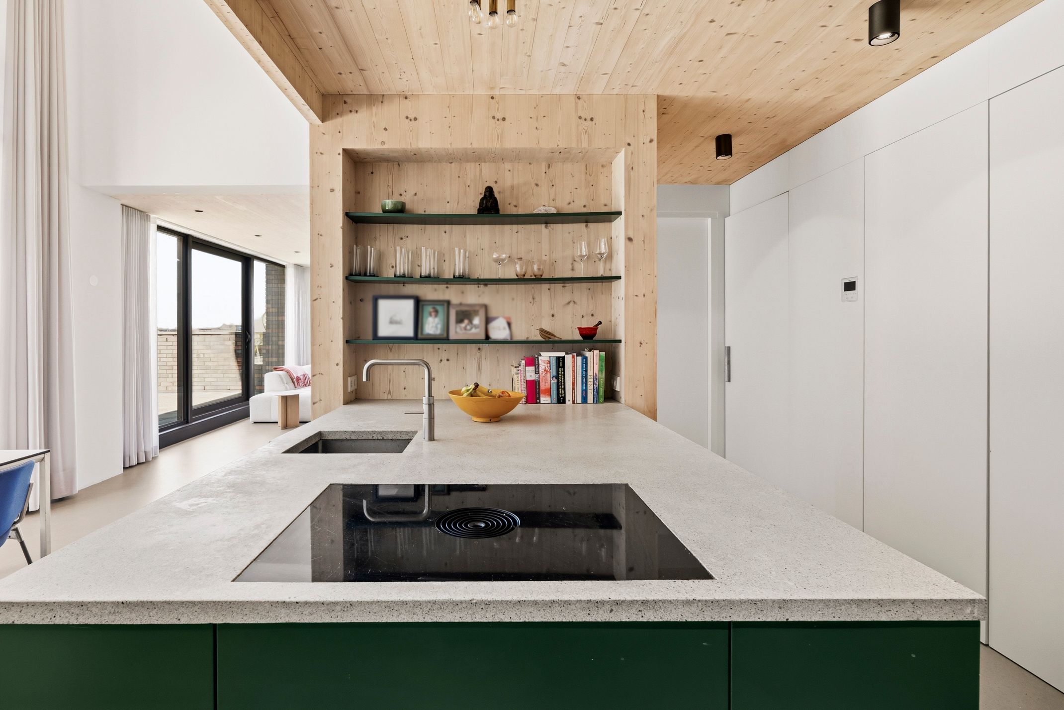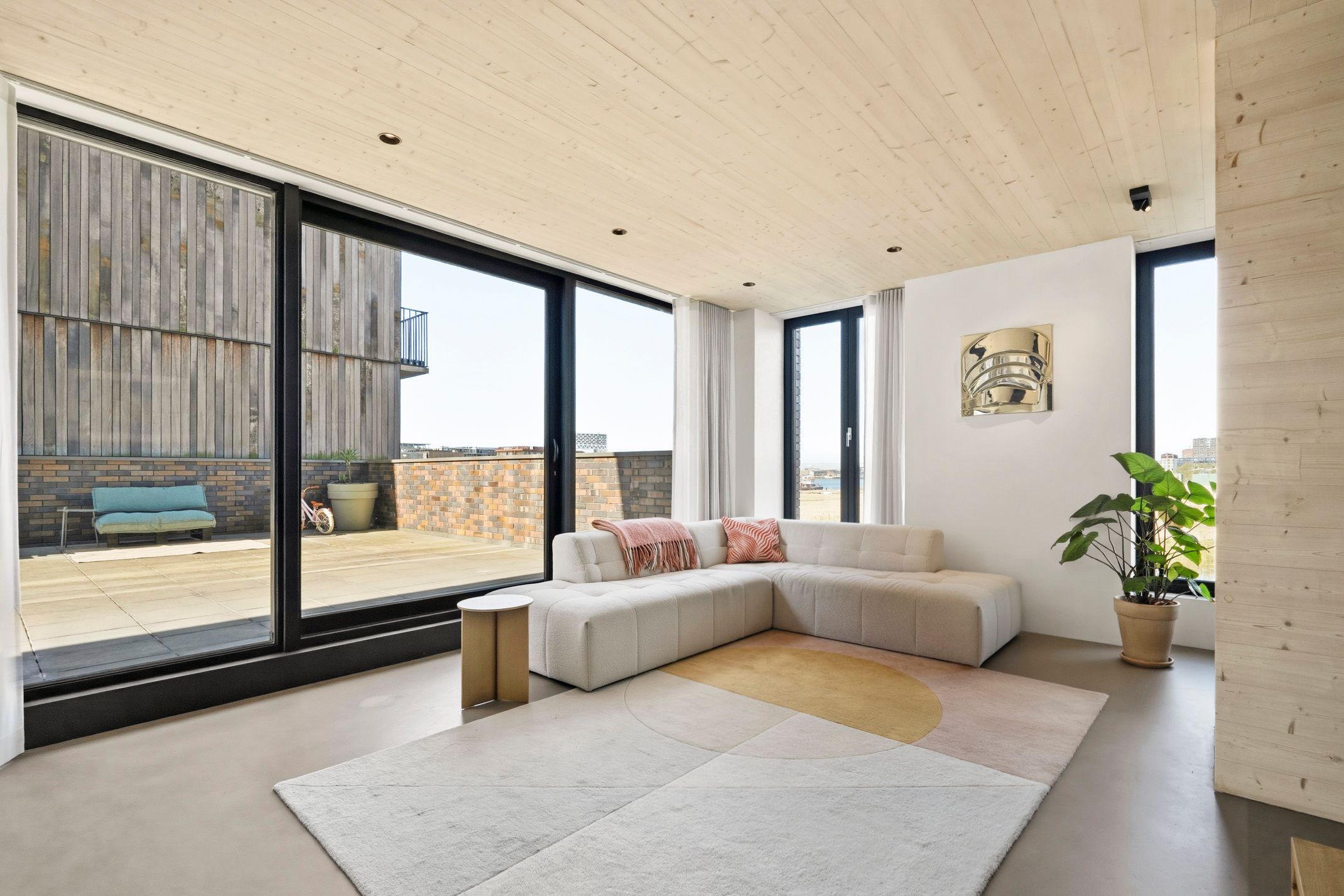 Unieke, zeer duurzame en lichte hoekwoning (150 m²) met loft-achtig karakter, hoge plafonds (5,3m²), privé parkeerplaats en een spectaculair dakterras (ca. 96 m²) op het zuiden met uitzicht over het I...